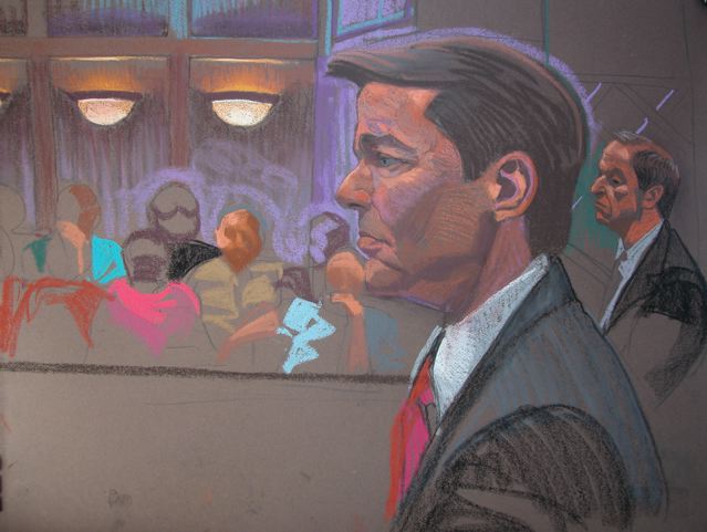 Cornell, a Weehawken resident, has been drawing trials since the 1970s and images from her portfolio are sought after by documentary filmmakers like Ken Burns who features 30 Cornell drawings in his new film “The Central Park Five†which recently aired on PBS about the five young men convicted and later found not guilty of the rape attack of the “Central Park Joggerâ€. Just last week CNN contacted Cornell for a documentary on the 1980 murder of Beatles’ singer/songwriter John Lennon. They wanted to purchase the drawing Cornell did of gunman Mark David Chapman at his arraignment clutching the book “Catcher in the Ryeâ€.